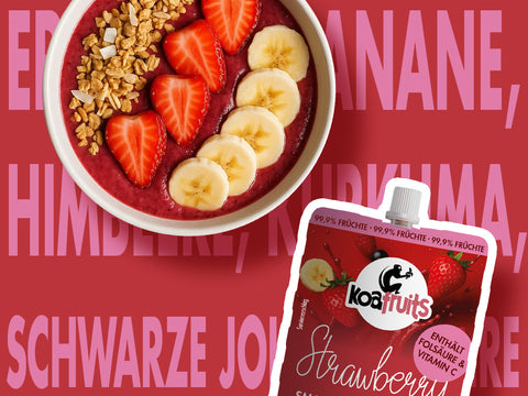 Frische Erdbeeren, Himbeeren, Johannisbeeren und Banane treffen auf einen Hauch Kurkuma – für einen harmonisch fruchtigen Geschmack mit feiner Würze.