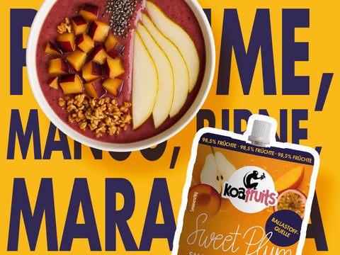 Die harmonische Mischung aus Pflaume, Mango, Birne, Passionsfrucht und Chiasamen sorgt für cremigen Genuss und langanhaltende Sättigung.